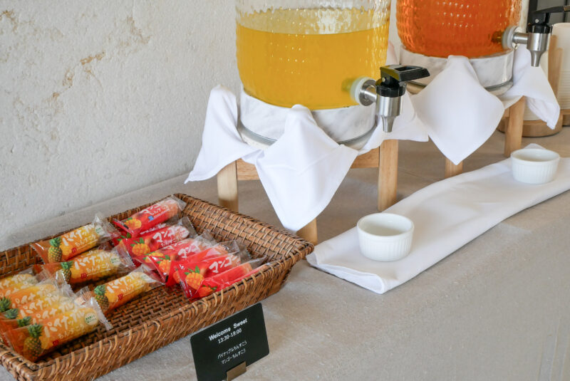 ウェルカムドリンク・ちんすこう・アイスをいただきながらチェックインを済ませたら、