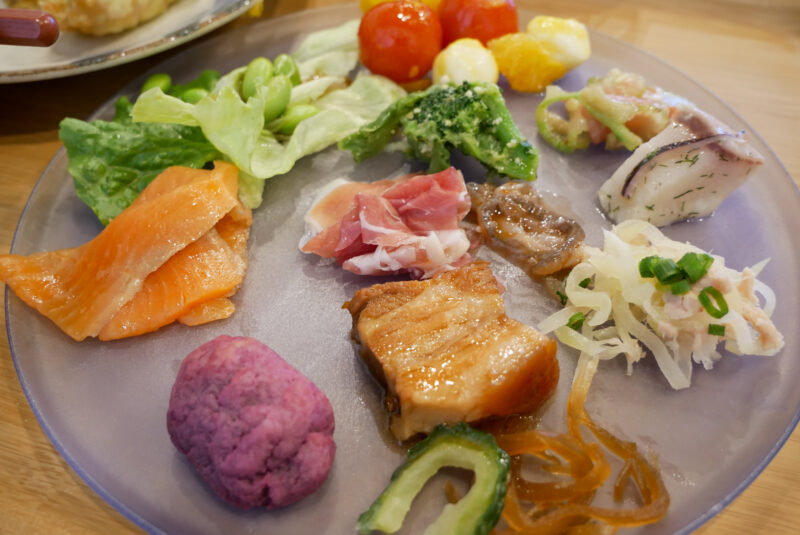 パパイヤのしりしり、黒糖パパイヤ漬け、へちまのサラダ、うむくじ(紅芋からなる沖縄の伝統的なおやつだそう)など、沖縄ならではの料理が楽しめます。