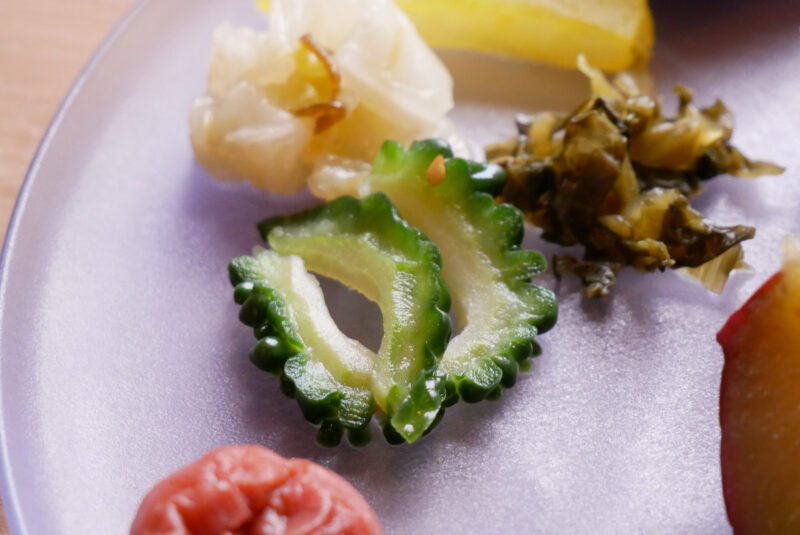 個人的にゴーヤは苦手なのですが、ゴーヤのお漬物が珍しくて食べてみたら、意外と苦味が抑えられていて食べやすかったです。