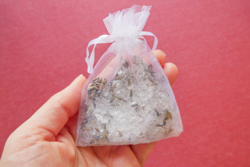 岩塩に好みのアロマオイルとハーブを加えるだけなので、小さなお子さんも楽しみやすいと思います。