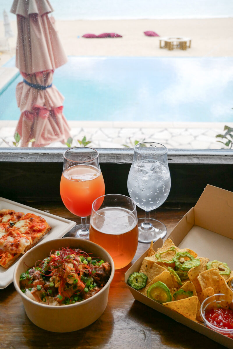 私たちは、炙りソーキ丼、マルゲリータピザ、サルサ&チップスなどをいただきました。