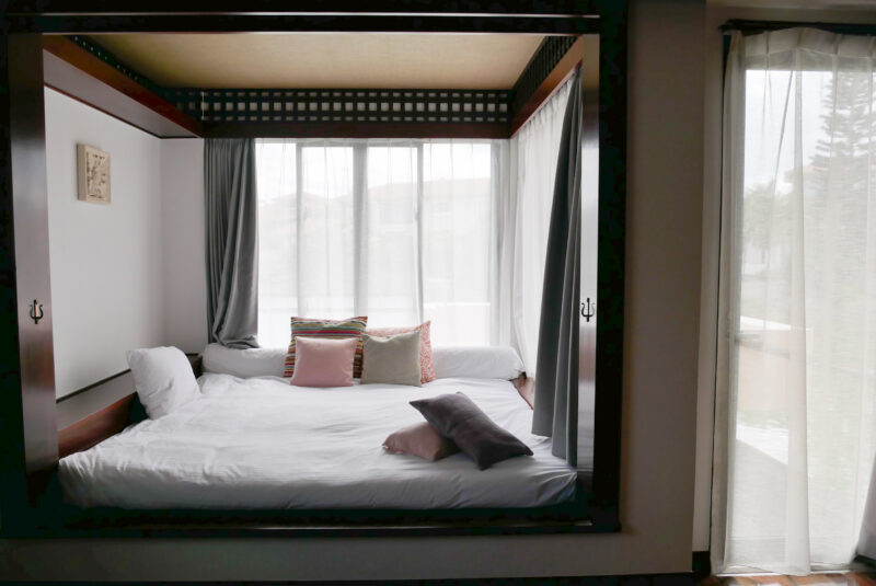 ちなみに、公式サイトに掲載されている写真の「天蓋カーテン」はありませんでした。(天蓋カーテンというよりも、夏限定の蚊帳なのかな?)