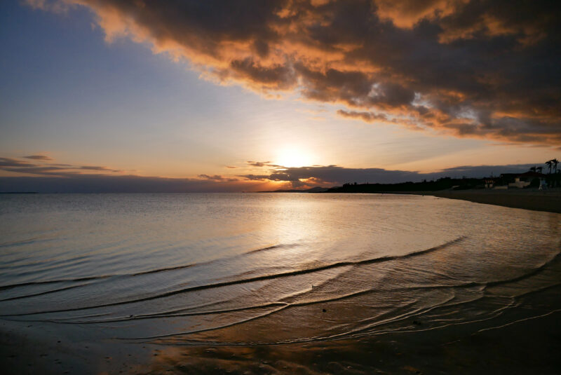 広大な白砂が広がるビーチへ、早朝とは時間帯を変えて訪れると、また異なる絶景が広がります。
