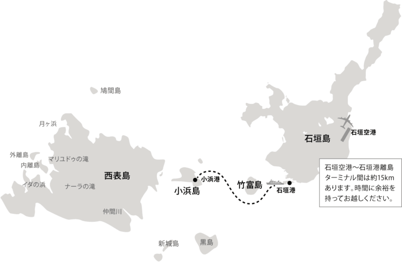 「石垣港離島ターミナル」に到着したら、八重山観光フェリーと安栄観光の2社が小浜島へフェリーを運航しているので、時間帯的に都合が良い方をお選びください。