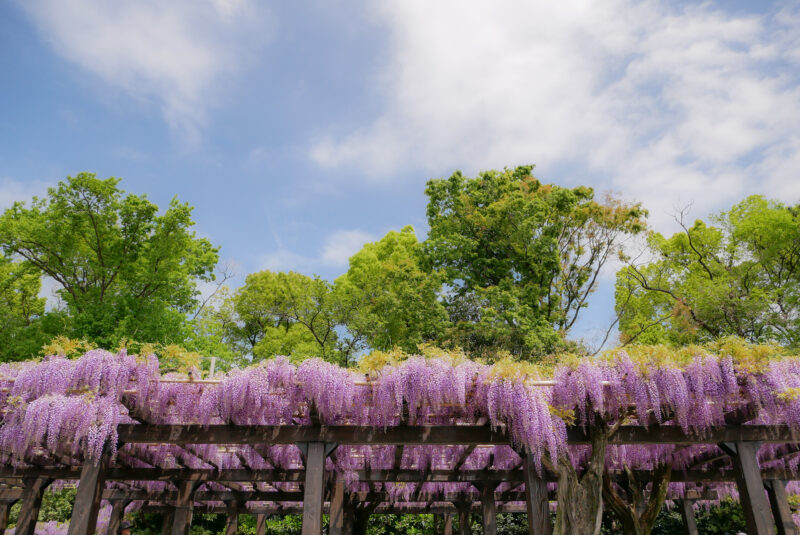鳥羽水環境保全センター(京都市上下水道局)では、藤の花が見頃を迎える数日間のみ一般公開されます。